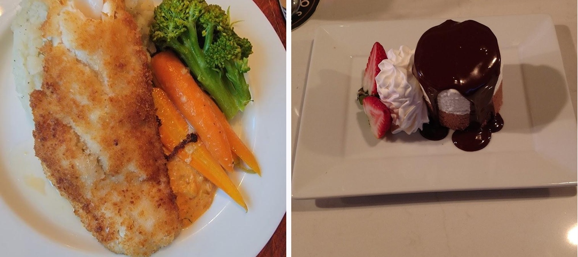 Very nice service from Liz very attentive and acknowledged it was my sisters birthday and we got a free dessert! We both had burgers and they were delicious, finished everything on our plates. We sat on the patio and it was a lovely view with the lake! Would recommend even if not staying at the hotel 😊
