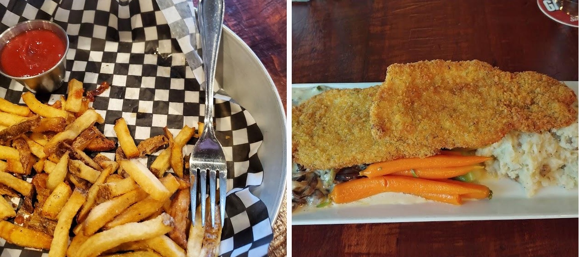 The food was really good and great portion sizes! All of the food was very filling and tasted great. Waitresses were very nice and the bartender made some good drinks!